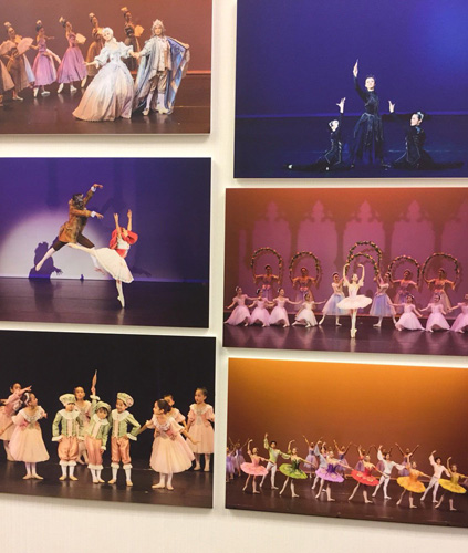 スタジオには、弊社の衣裳を利用して行った発表会のお写真も飾られていました。