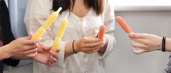 その後の休憩時間には、凍ったチューペットで涼をとっていました。